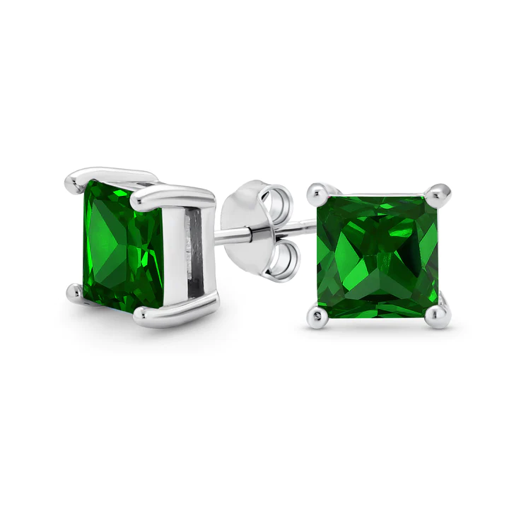 These sterling silver studs hold a 7mm, square, simulated pink tourmaline, princess cut CZ. They make the perfect gift for October babies, and people with pierced ears and chic style.